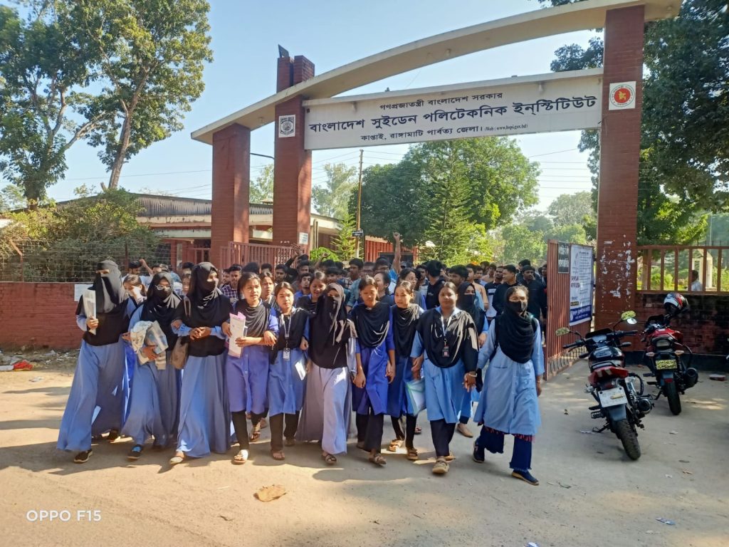 দাবি আদায়ে কেন্দ্রীয় কর্মসূচির অংশ হিসাবে বাংলাদেশ সুইডেন পলিটেকনিক ইনস্টিটিউট ক্যাম্পাসে প্রতিষ্ঠানের সাধারণ শিক্ষার্থীদরা বোর্ড পরীক্ষা বর্জন এবং বিক্ষোভ কর্মসূচি পালন করেছে। উপ–সহকারী প্রকৌশলী পদে বিএসসি ইঞ্জিনিয়ারদের সুযোগ প্রদানের সুপারিশের প্রতিবাদে বৃহস্পতিবার সকালে এই প্রতিবাদ কর্মসূচি পালন করে শিক্ষার্থীরা।