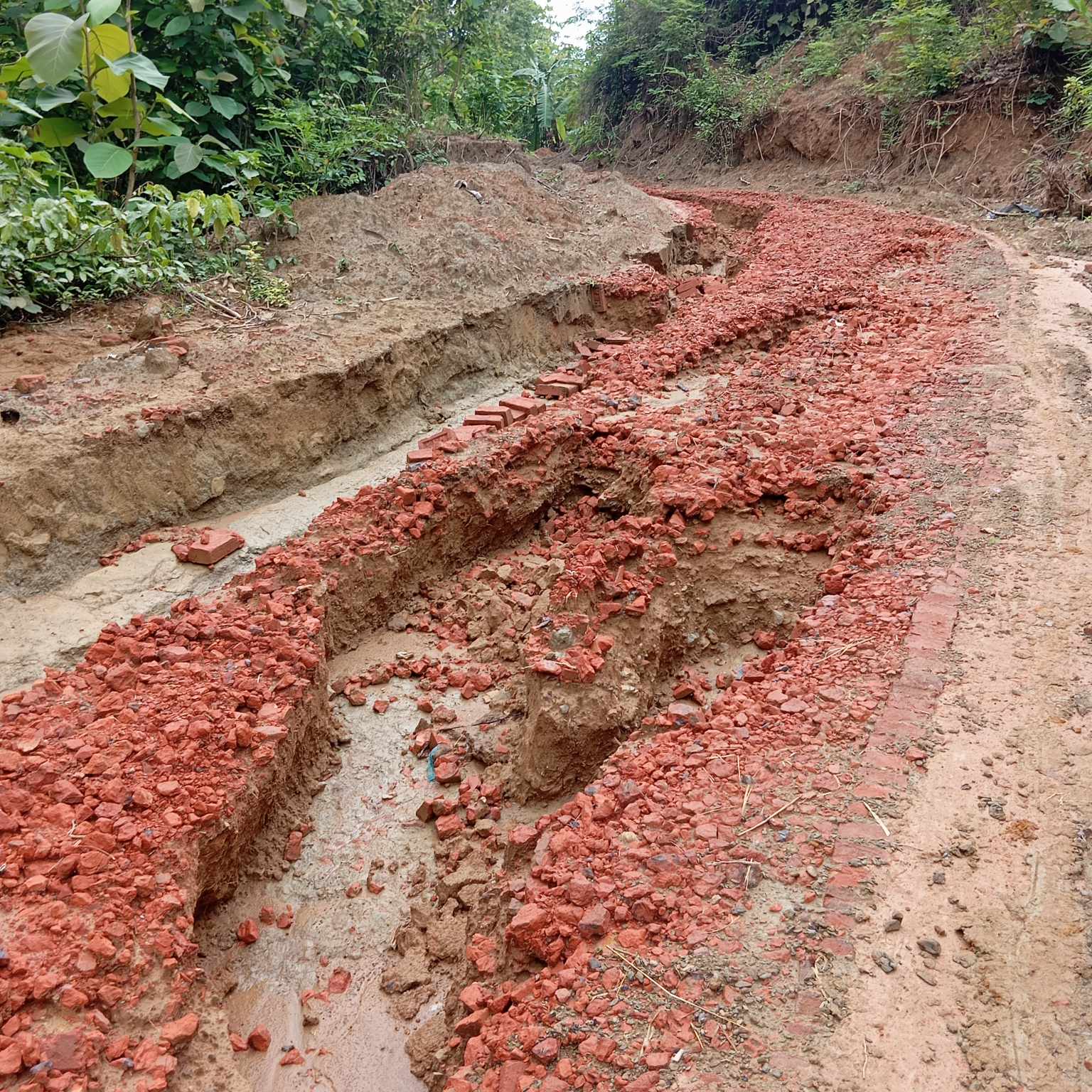 খোঁজ নিয়ে জানা যায়, জেলার লংগদু উপজেলার সদর ইউনিয়নের দজরপাড়া হইতে ভুইয়াছড়া পর্যন্ত প্রায় আড়াই কিলোমিটার (২৪৫৫ মিটার) দৈর্ঘ্যরে একটি সড়ক নির্মাণের উদ্যোগ নেয় স্থানীয় সরকার প্রকৌশল অধিদপ্তর (এলজিইডি)। গত ২০২২-২৩ অর্থবছরে দুই কোটি নয় লক্ষ টাকা ব্যয়ে সড়কটি নির্মাণের দরপত্র আহবান করা হয়। ঠিকাদারি প্রতিষ্ঠান এস অনন্ত বিকাশ ত্রিপুরা সড়কটি নির্মাণ কাজের দরপত্র পায়। তবে দরপত্র পাবার প্রায় দুইবছর পর ২০২৪ সালের অক্টোবরে কাজটি শুরু করেন ঠিকাদার। কাজের শুরু থেকেই ধীর গতির কারণে সমাপ্ত হয়নি সড়ক নির্মাণ। সড়কটির নির্মাণ কাজ অসমাপ্ত থাকায় এবছরের মে মাসের শেষদিকে এক ঘণ্টার ভারি বৃষ্টিতে সড়কটির ইট, কংকর, বালু সব ভেসে যায়।